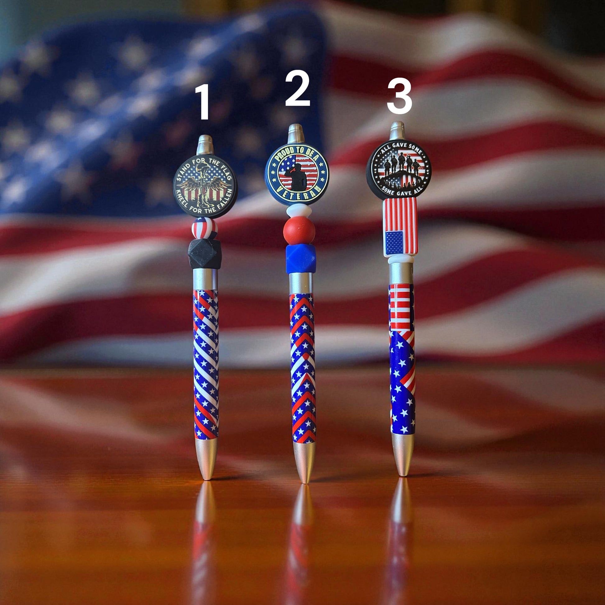 Each pen features vibrant red, white, and blue designs with heartfelt details — from stars and stripes to veteran emblems. Whether you’re gifting a hero, writing a thank-you note, or showing your love for country, these pens are a small tribute to great courage.